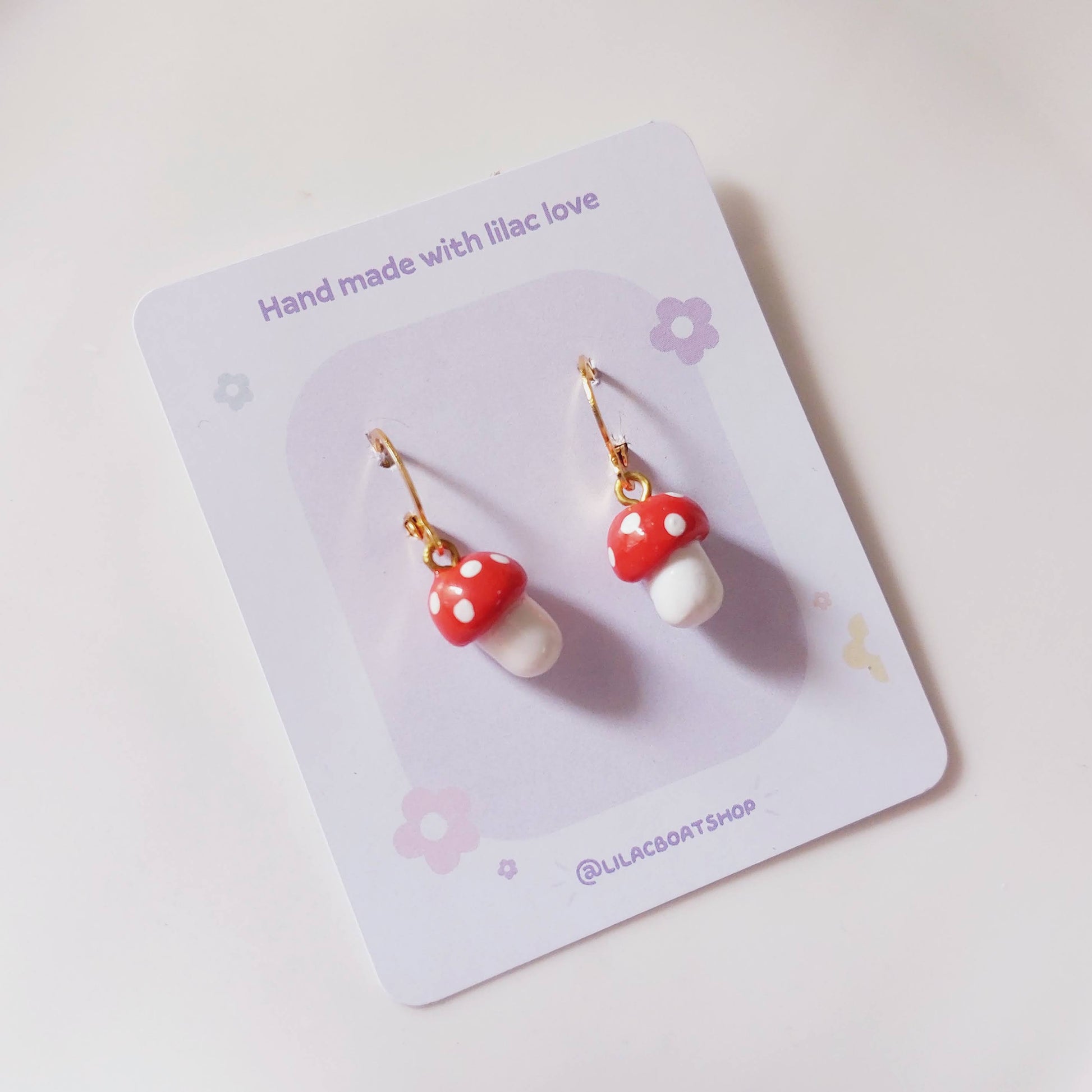 Our cute Mushroom Earrings are perfect for adding a playful touch to any outfit. These tiny, charming earrings will bring a bit of whimsy to your style.